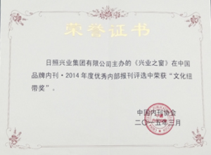 ·2015年3月,《興業(yè)之窗》在中國品牌內(nèi)刊2014年度優(yōu)秀內(nèi)部報刊評選中榮獲"文化紐帶獎"